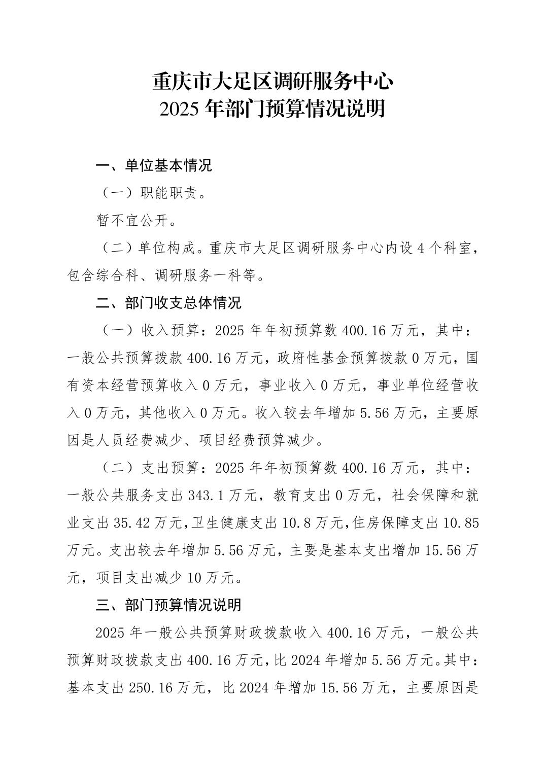 重慶市大足區(qū)調(diào)研服務(wù)中心2025年部門(mén)預(yù)算情況說(shuō)明
