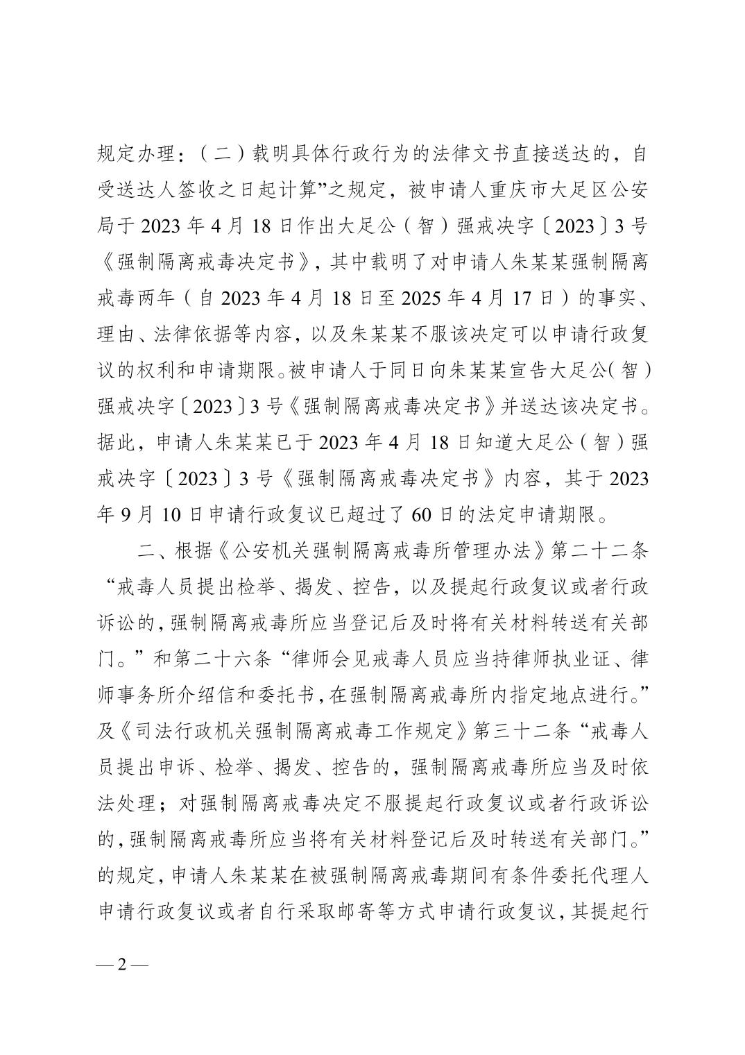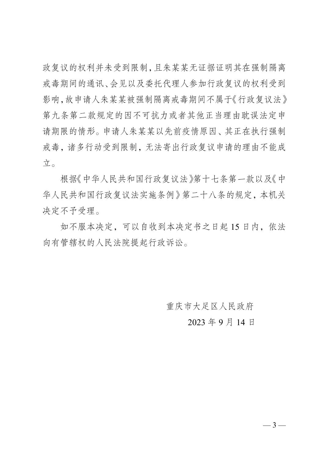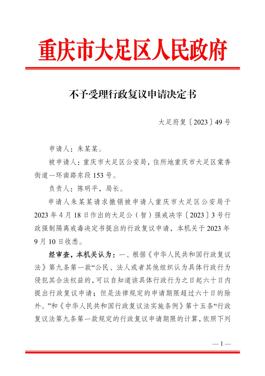 不予受理行政復議申請決定書 大足府復〔2023〕49 號