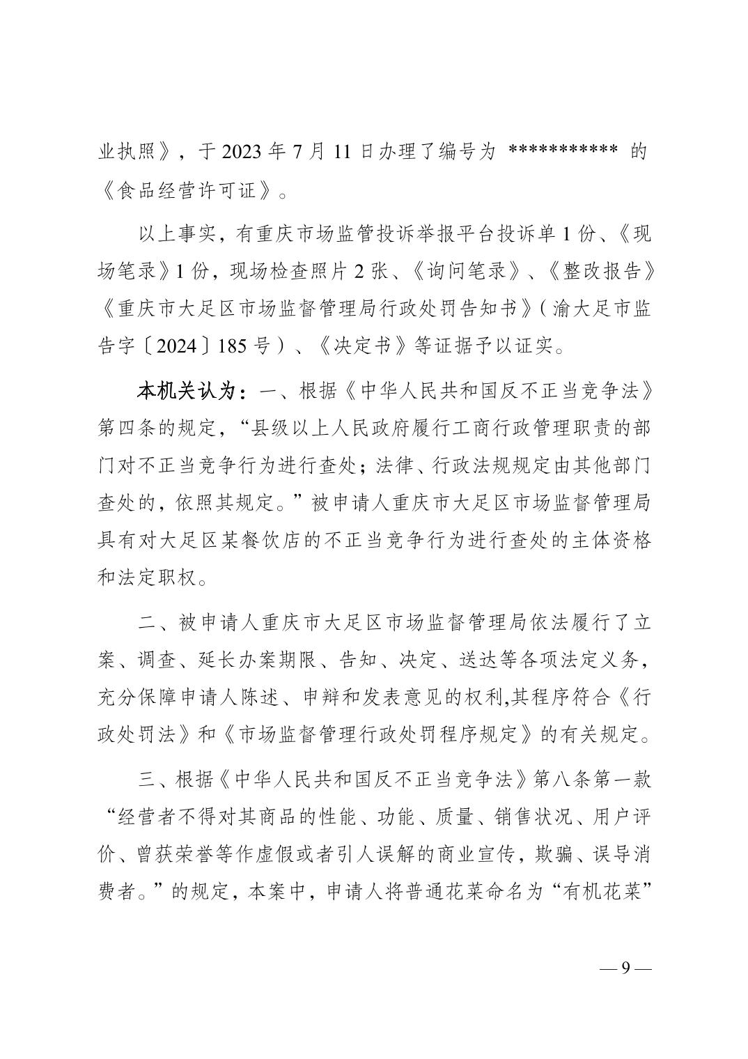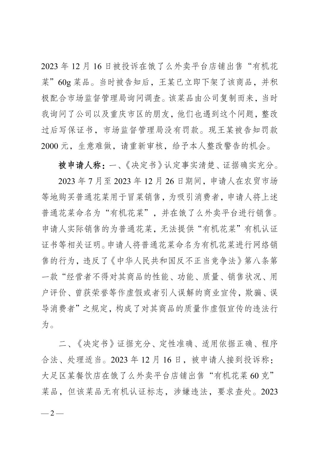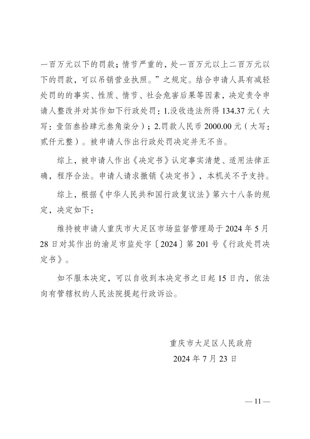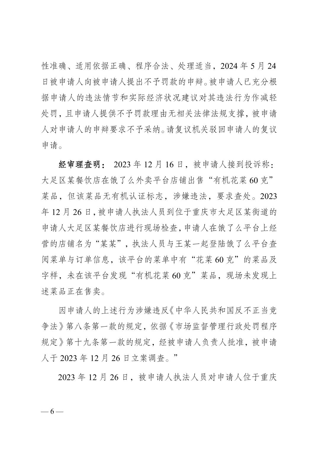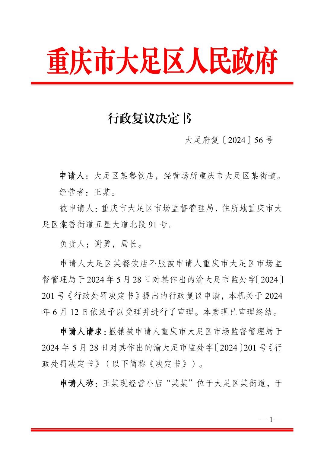 大足府復〔2024〕56號行政復議決定書