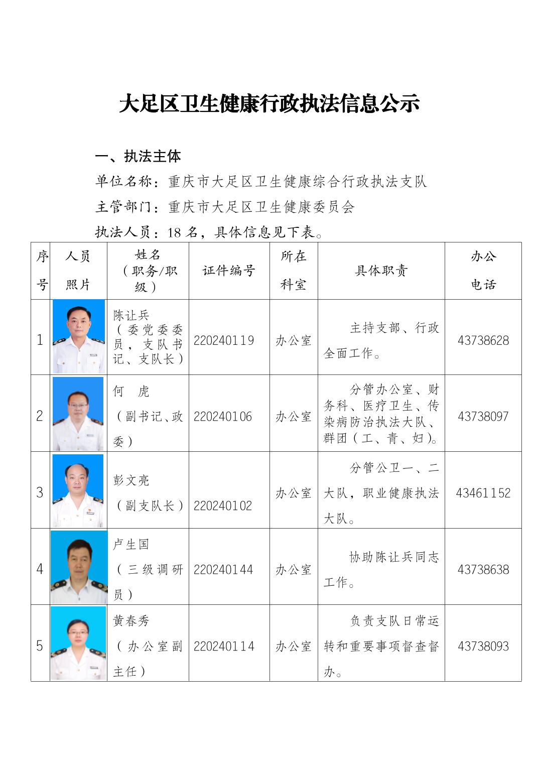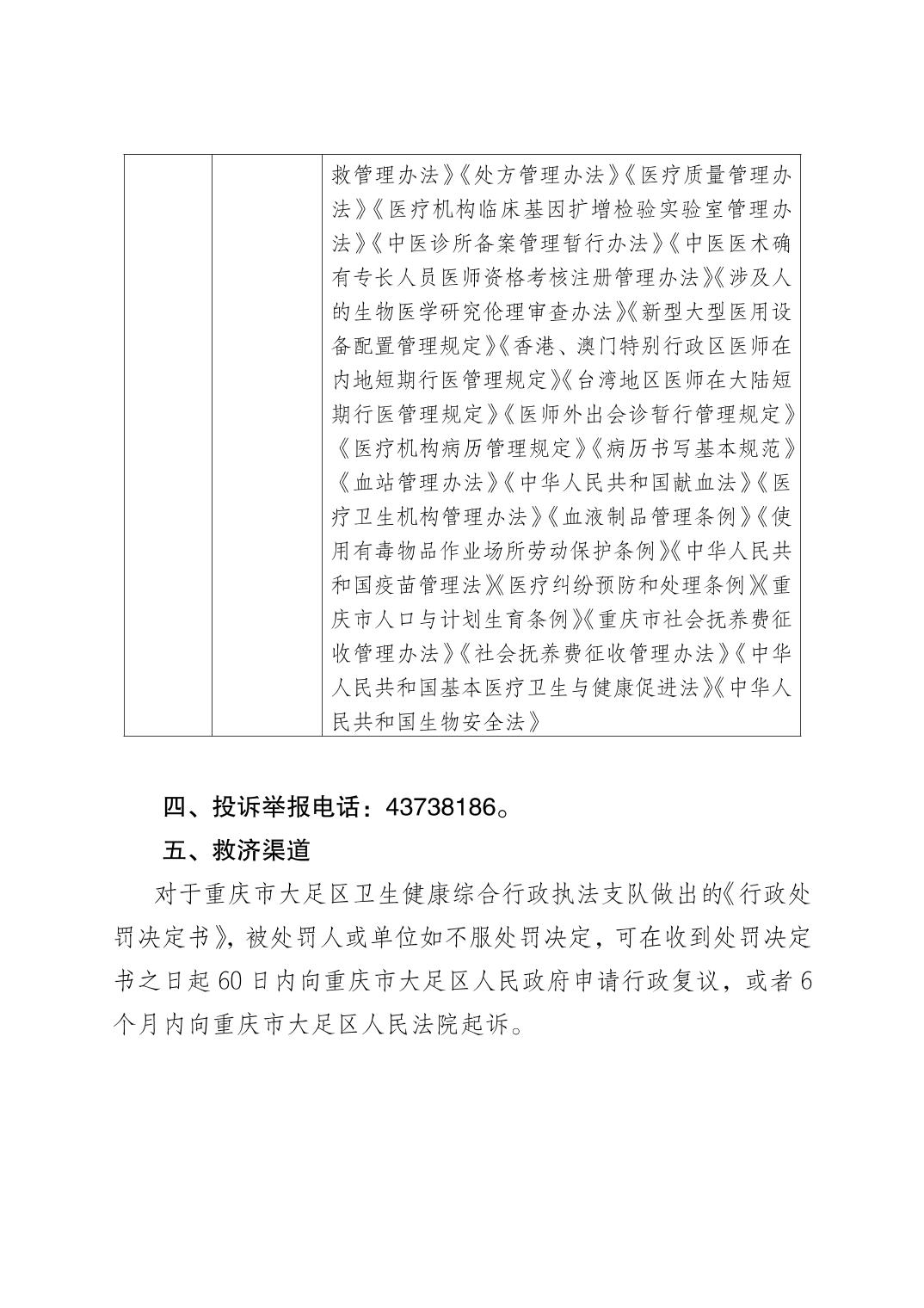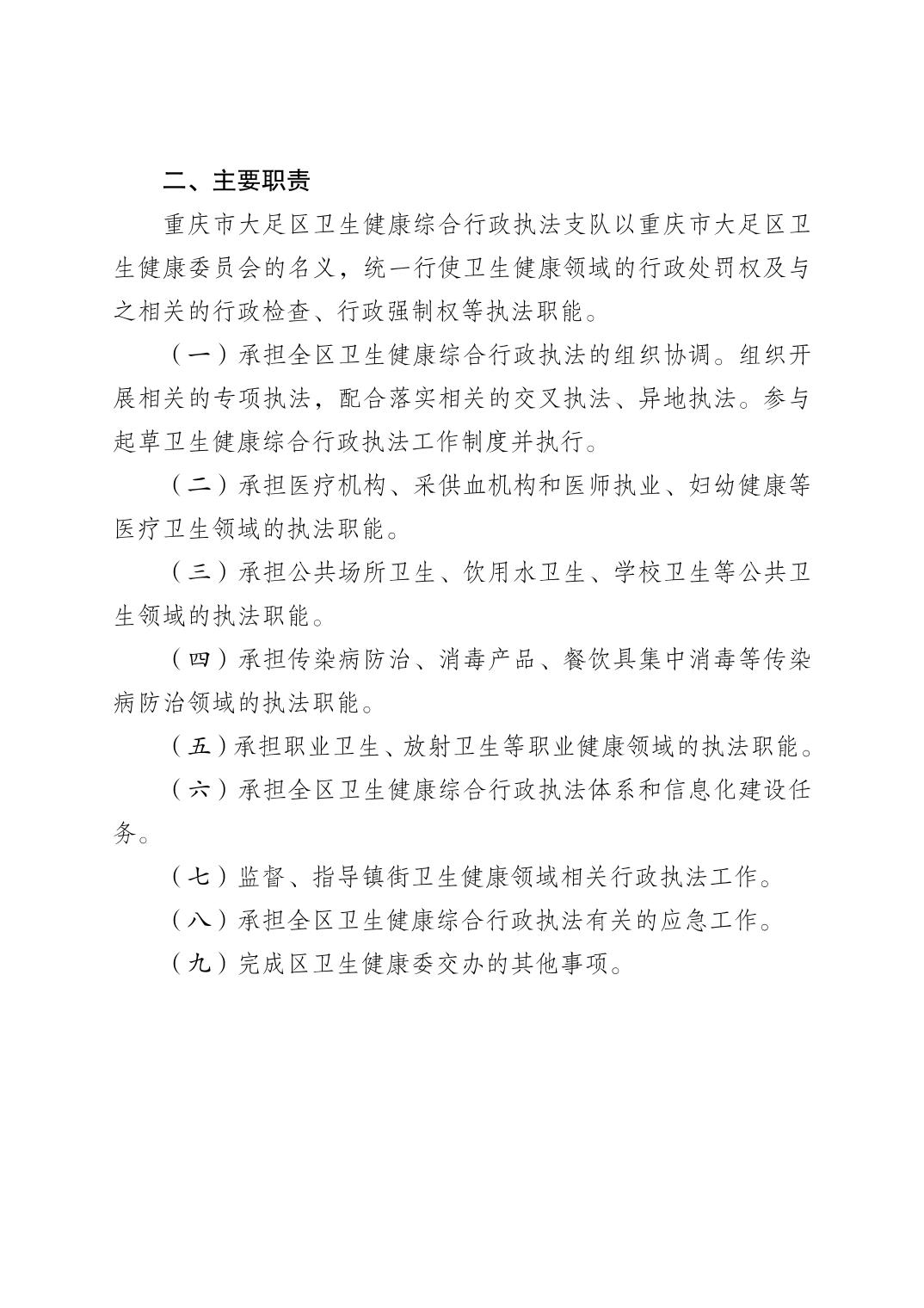 重慶市大足區衛生健康行政執法主體等信息公開