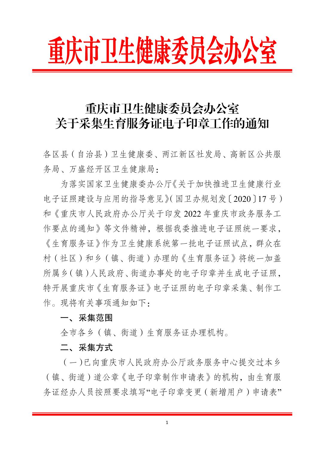 委辦便箋〔2022〕505號關于采集生育服務證電子印章工作的通知