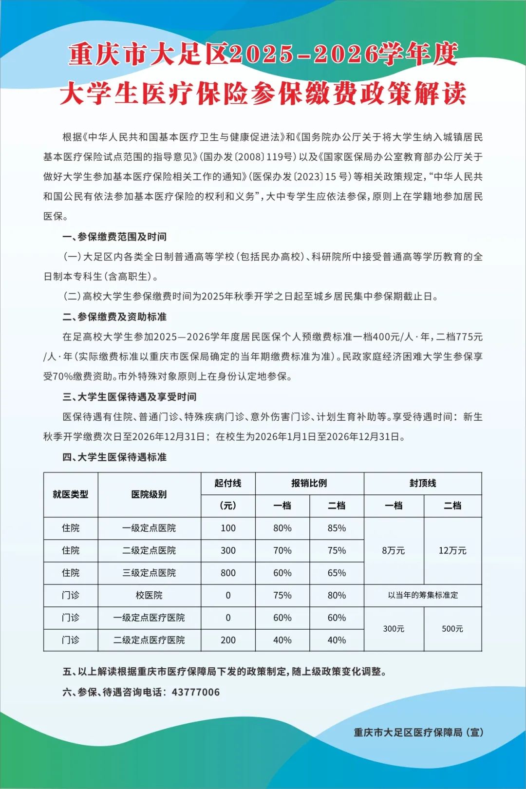 重慶市大足區2025-2026學年度大學生醫療保險參保繳費政策解讀
