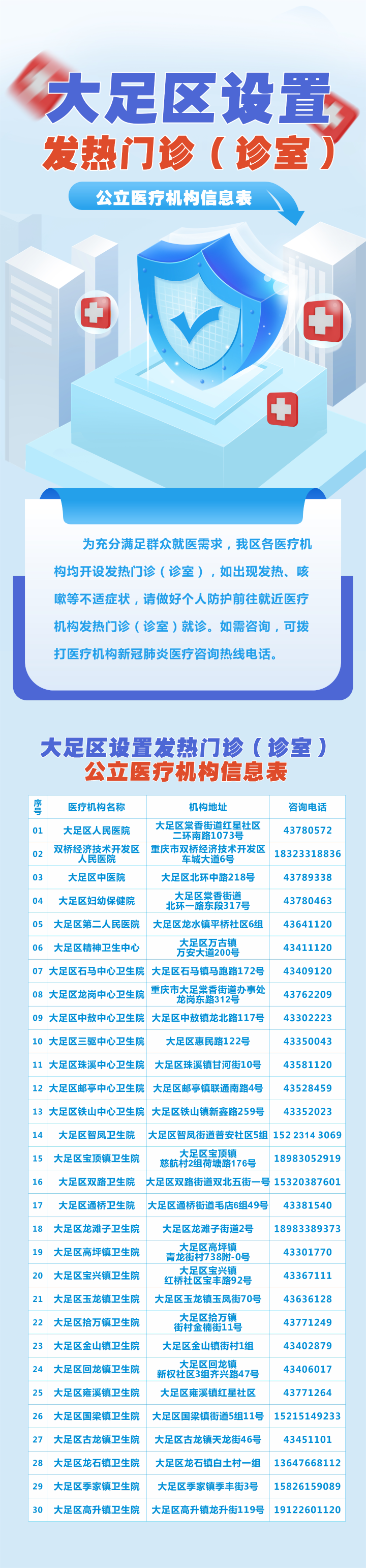 大足區設置發熱門診(診室)公立醫療機構信息表